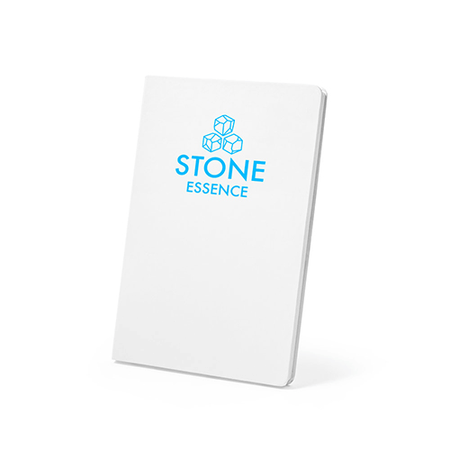 Caderno A5 resistente à água, com capa rígida em papel pedra. Contém 128 páginas pautadas (120g/m²) também em papel pedra. 150 x 210 mm