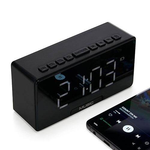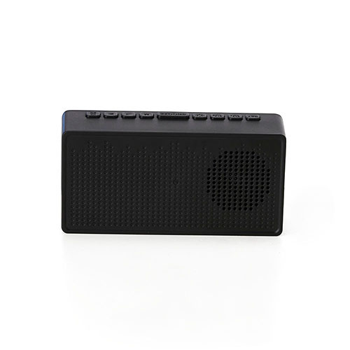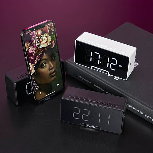 Descrição: Caixa de som multimídia com relógio despertador e suporte para celular. Produzida em plástico e com borrachas antiderrapantes na área inferior, a caixa de som tem a área frontal com display de LED, além de um compartimento com suporte para celular – uma espécie de “gaveta” aonde é exibido (MUSIC), basta puxá-la ter acesso ao compartimento. A caixa de som executa nos modos bluetooth, rádio FM, cartão TF-microSD e entrada auxiliar P2. Acompanha cabo USB e manual em inglês.