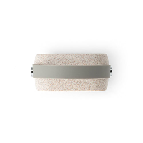 Caixa de som portátil em fibra de palha de trigo e ABS com alça em silicone para facilitar o transporte, potência de 3W e transmissão por bluetooth 5.0. Tempo de reprodução de 4h30, com uma bateria de 500 mAh. Incluso cabo micro USB. Fornecido em caixa presente em papel kraft. 70 x 70 x 34 mm