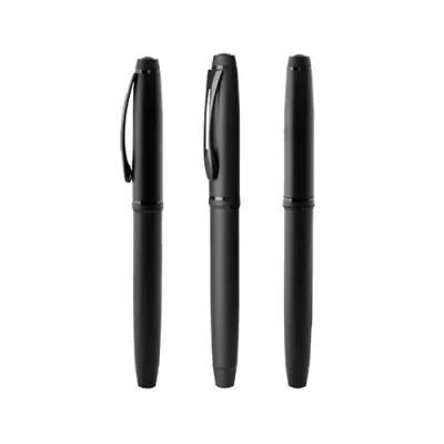 Descrição: Caneta com corpo em bambu e detalhes em plástico e metal. Aciona por clique. Acompanha estojo de papel.
