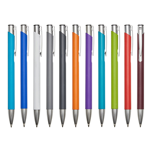 Descrição: Caneta metálica com carga esferográfica azul 1.0mm e acionamento por clique.