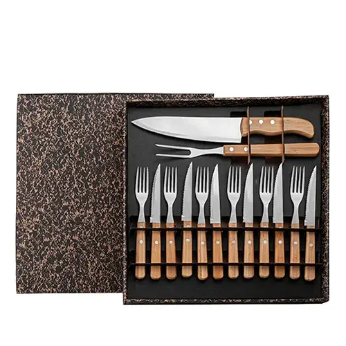 Conjunto para Churrasco c/ Garfo, Faca e Talheres de Mesa 14 Pçs SMKT-9031E