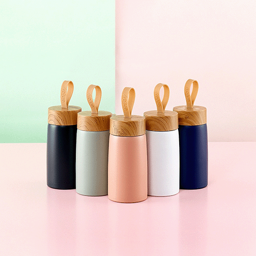 Descrição: Garrafa inox 304 com parede dupla, capacidade de 250ml. Contém tampa plástica com design de bambu e alça de silicone para transporte.