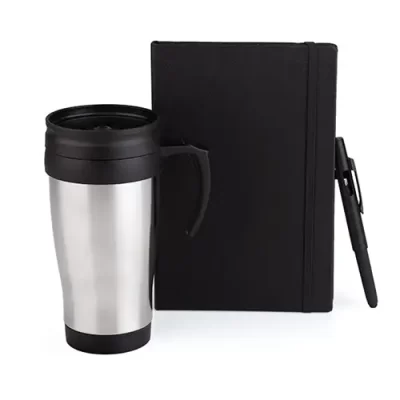 DESCRIÇÃO: Mochila preta confeccionada em Polyester 600D, squeeze confeccionado em plástico SAN (Estinero Acrilonitrilo) revestido em aço inox escovado; Fone de ouvido branco com microfone, controle de volume e estojo plástico.