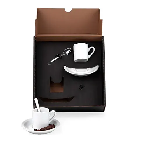 RECOMENDAÇÃO DE PERSONALIZAÇÃO: Gravação em Silkscreen nas xícaras e Laser na caixa.