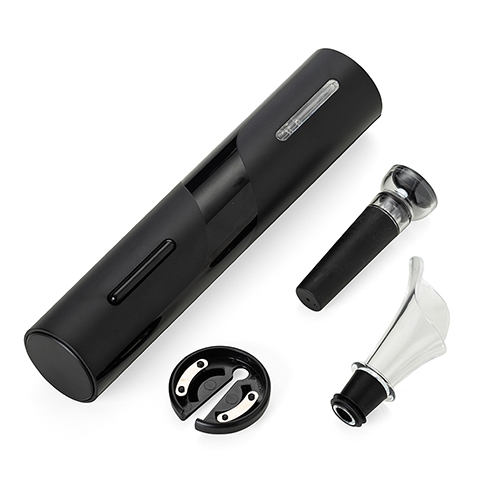 Descrição: Kit saca rolhas elétrico. O Kit contém saca rolhas elétrico, tampa de bico com funcionamento a vácuo, bico condutor e lamina cortadora de lacre. Funcionamento através de 4 pilhas AA (não acompanha)