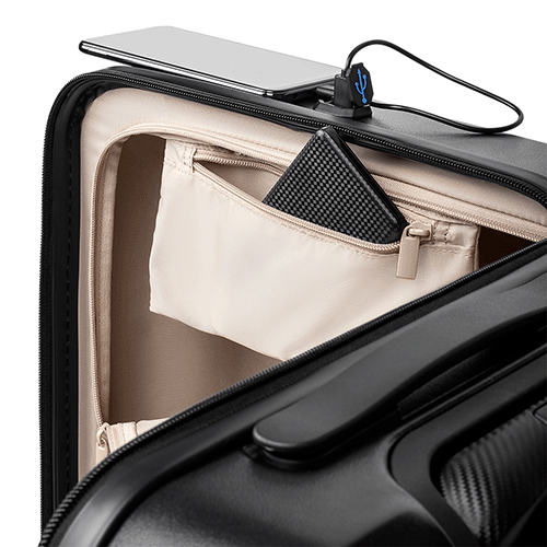 Abertura frontal com ziper para acesso ao interior da mala;