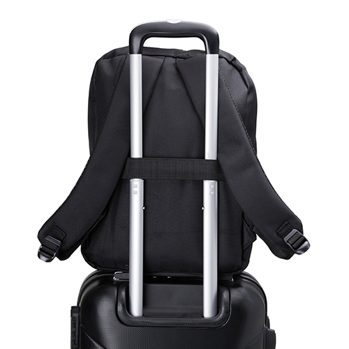 Descrição: Mochila de nylon 23 Litros com 3 compartimentos, sendo o principal com bolso para notebook 15,6. Com divisórias internas para acessórios, a mochila possui bolso lateral, suporte externo USB e alça para encaixe em malas e viagens.