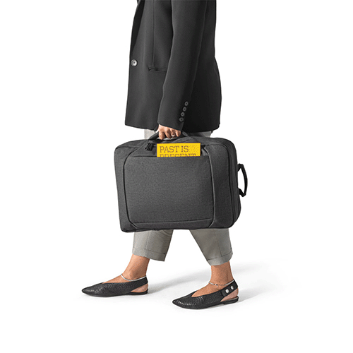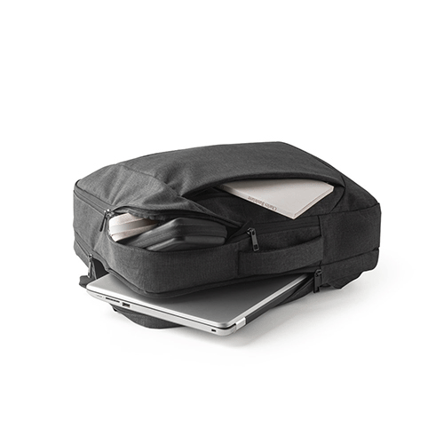 Mochila híbrida (2 em 1) em 600D com 2 modos de transporte. Possui um modo mochila, com parte posterior e alças almofadadas com mecanismo que permite ocultá-las. Também pode ser utilizada em modo pasta, com uma pega de mão reforçada e confortável. Contém 2 compartimentos principais: 1 com bolso para notebook até 15,6″ e outro com vários bolsos multifuncionais. Possui ainda 1 bolso frontal com fecho e banda de transporte para trolley. 320 x 425 x 120 mm